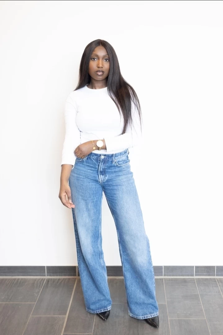 Non-stretch denim with a contemporary wide-leg cut. High-waisted fit.